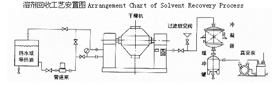 SZG雙錐回轉真空干燥機為雙錐形的回轉罐體,罐內在真空狀態下,向夾套內通入蒸汽或熱水進行加熱,熱量通過罐體內壁與濕物料接觸。濕物料吸熱后蒸發的水汽。通過真空泵經真空排氣管被抽走。由于罐體內處于真空狀態,且罐體的回轉使物料不斷的上下,內外翻動,故加快了物料的干燥速度,提高干燥效率,達到均勻干燥的目的。