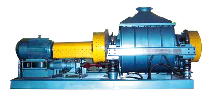 振動(dòng)磨機(jī)是新型制粉設(shè)備,該機(jī)是利用圓筒的高頻振動(dòng),使筒體中的研磨介質(zhì)依靠慣性力沖擊物料,磨介通常為Φ16-Φ36mm的圓鋼,鋼棒經(jīng)過(guò)滲碳和淬火處理,硬度達(dá)到HRC55以上。入料粒度>15mm時(shí)取較大直徑,入料粒度<15mm時(shí)取較小直徑,并采用兩種以上規(guī)格鋼棒(鋼球)搭配使用。工作時(shí),電動(dòng)機(jī)通過(guò)撓性連軸器和萬(wàn)向連軸器帶動(dòng)帶有偏心重錘的激振器的軸旋轉(zhuǎn),使筒體產(chǎn)生振動(dòng),筒內(nèi)的磨介和物料在筒內(nèi)翻轉(zhuǎn)、沖擊,使物料在短時(shí)間內(nèi)得到粉碎。